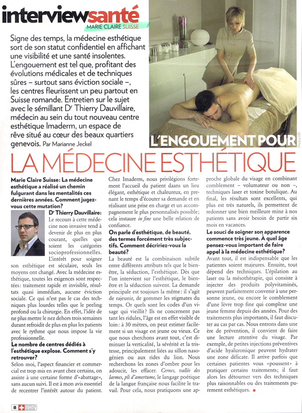 Article IMADERM : « L'engouement pour la médecine esthétique » - Marie-Claire - 2011